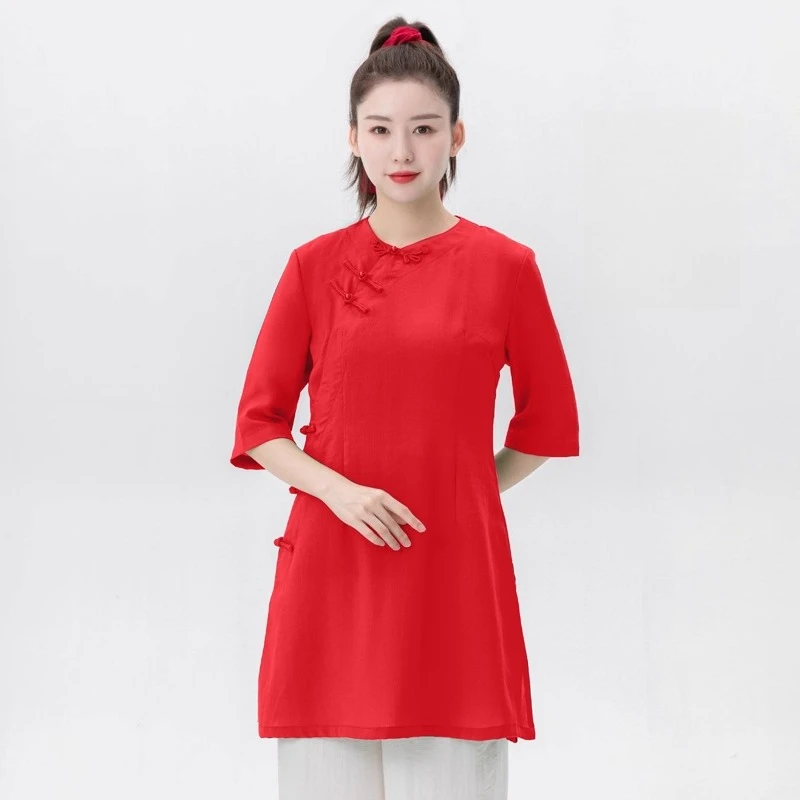 Hanfu košile dámská prádlo tangzhuang styl v-neck košile, zen meditace čaj ceremonie blůza s strana kravaty