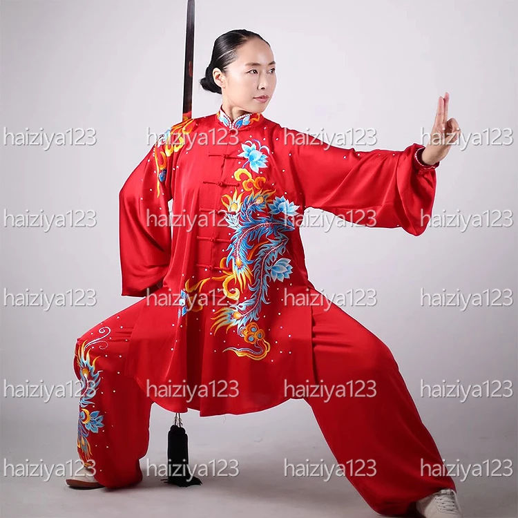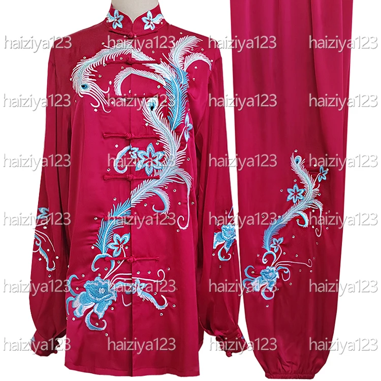 Upscale taie chi uniforma taiji oblečení kungfu oblek qigong obleček vyšívané fénix pro pánský ženské děvče hoch děti dospělé unisex