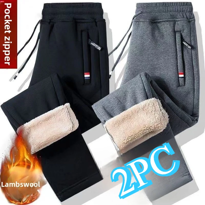 2026 nový pánské zima zahuštěný rouno beránek samet ležérní volné velký rozměr sportovní kalhot manžetové přímo noha teplý dlouhé kalhoty