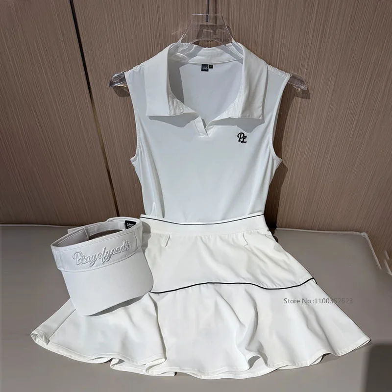 Pla léto golf oblečení ženy bez rukávů rychleschnoucí tričko v-neck polo komora topy ženské vysoký pás golf sukně sportovní sukně