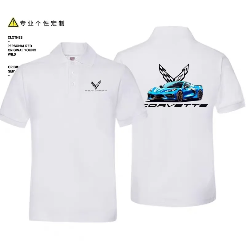 Korveta C8 americký eight-bar supercar modifikovaná auto tričko klopa polo košile pánské auto fanoušek workwear s krátkými rukávy košile