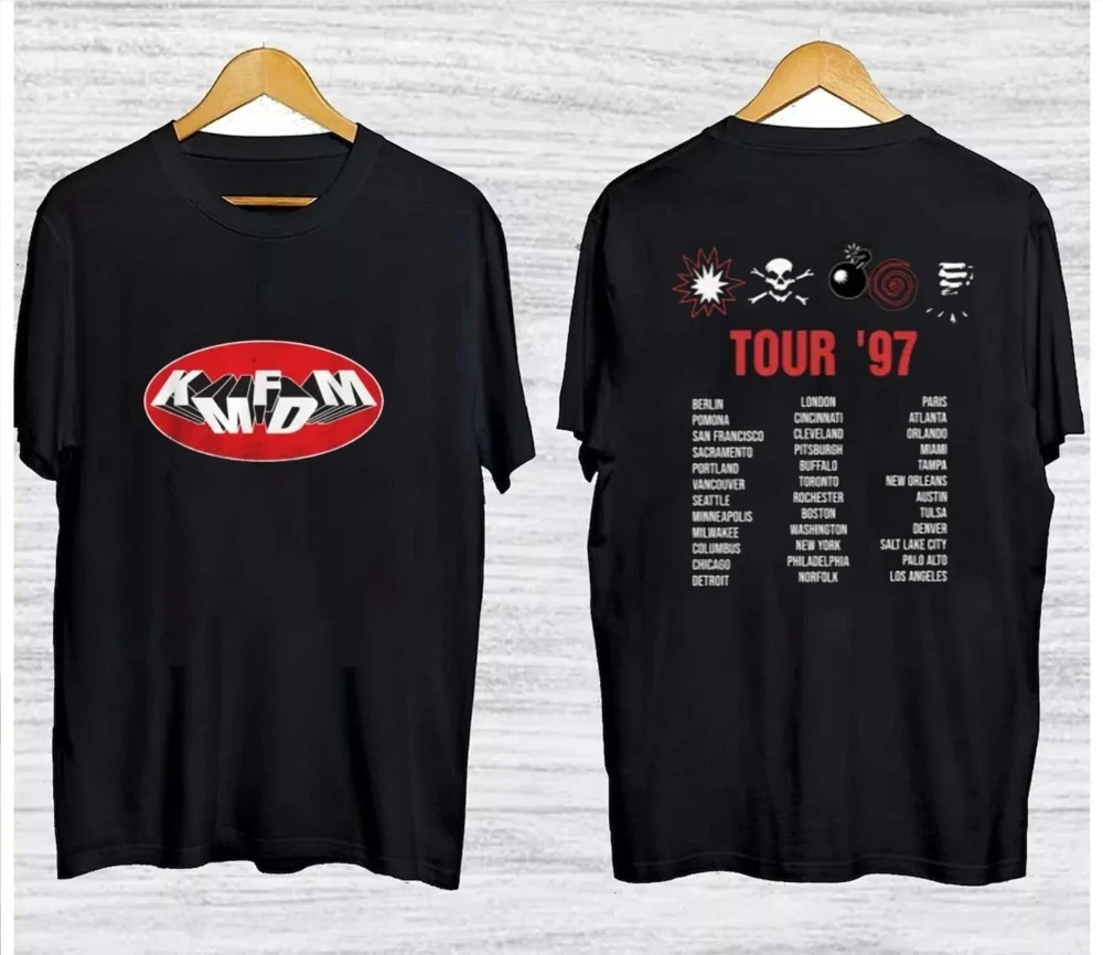 KMFDM pás košile KMFDM 1997 symbolem túra 2025 fanoušek tričko pánské a dámská potištěné pohodlné krátký rukáv pouliční oblečení