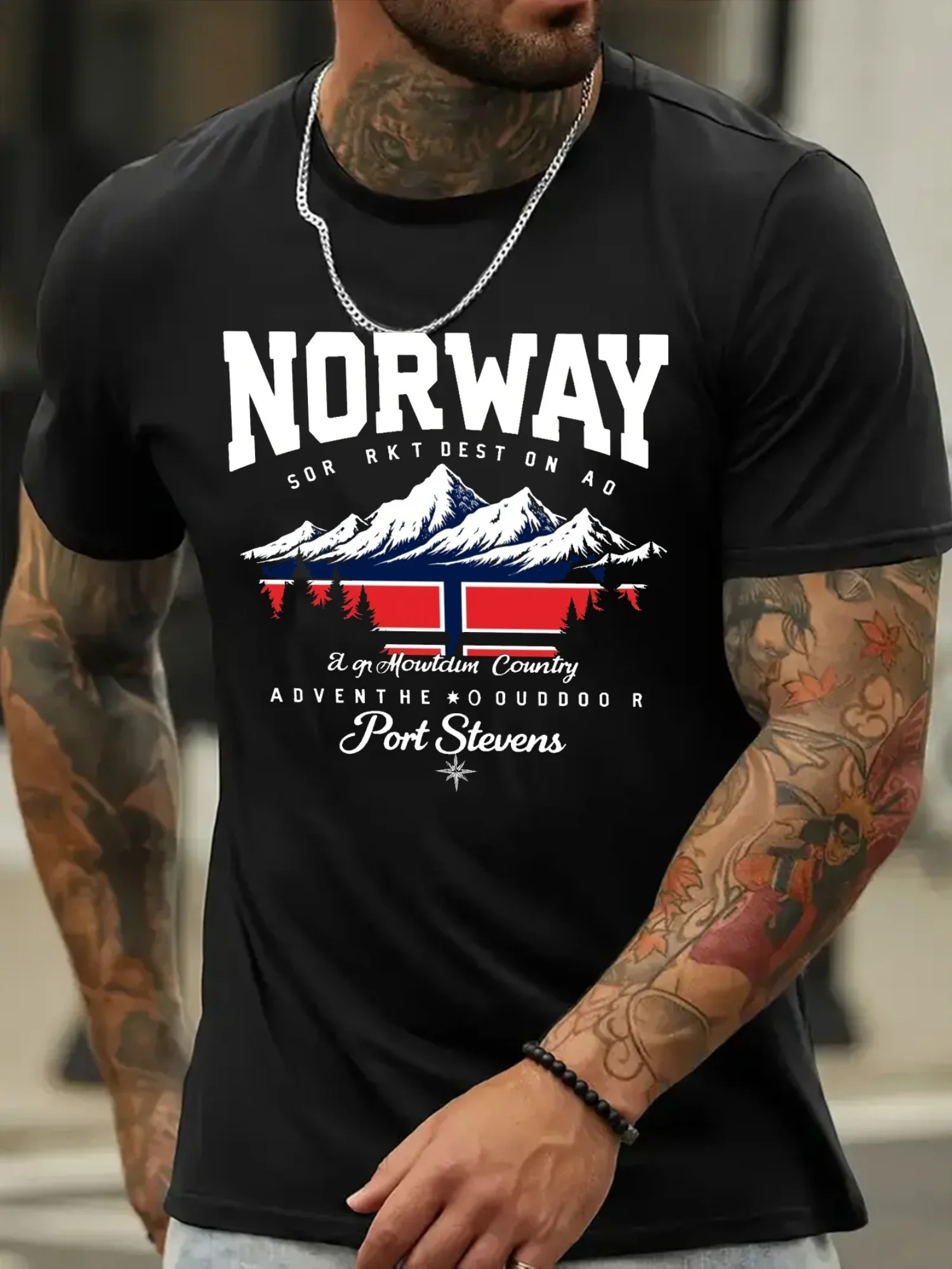 Norsko muži bavlna tričko léto krátký rukáv ležérní vintage retro venku hora dobrodružství levý bok lodi stevens