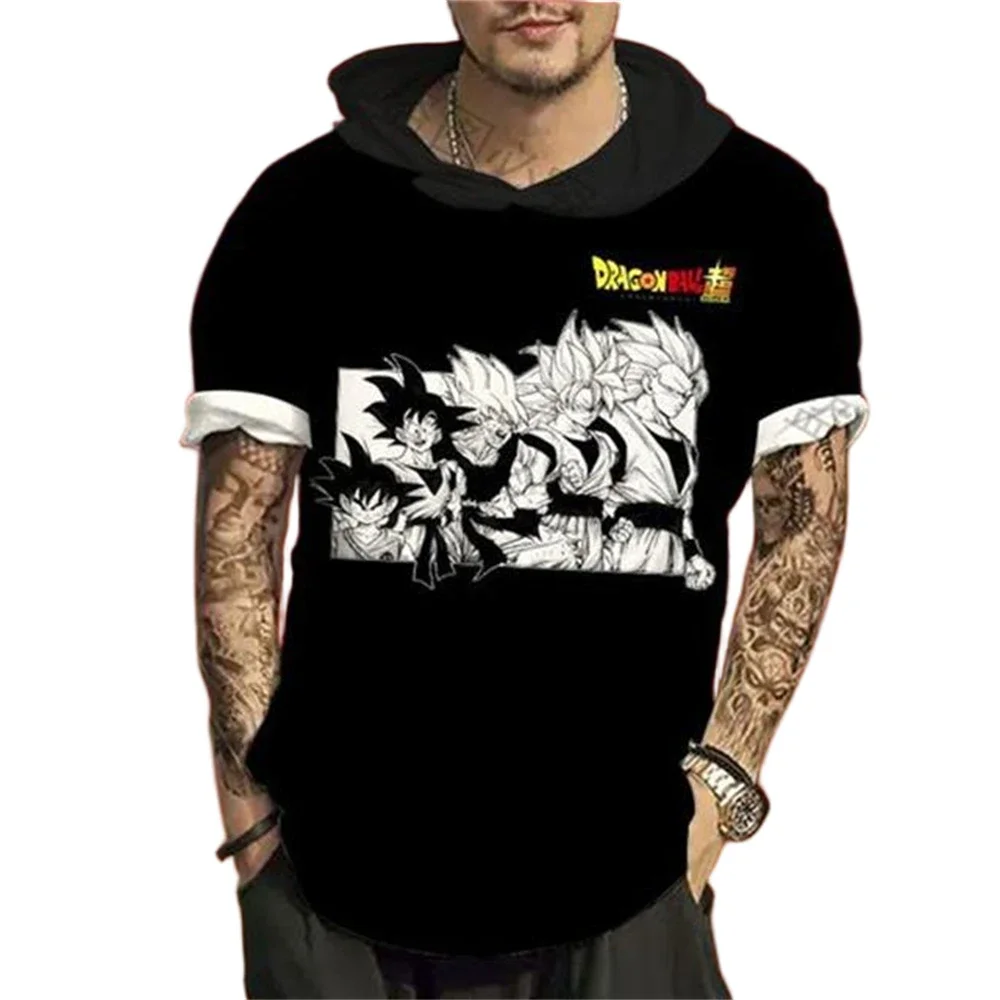 Pánské GMY oblečení cvičení nést tričko jaro léto drak záruka tričko goku s kapucí tričko kakarot vegeta krátký rukáv
