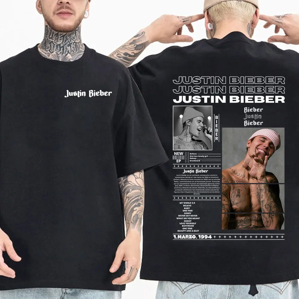 Justin bieber pop hudba tričko muži a ženy léto bavlna oblečení móda hip-hop Y2K kolo krk krátký rukáv topy unisex