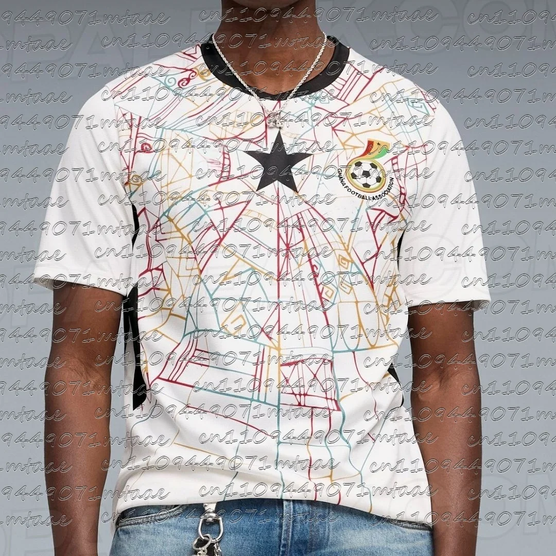 2026 pánské haná kopaná dres bílá geometrické střih GFA černá hvězda fotbal košile AFCON fanoušek dres pro hra den pouliční oblečení