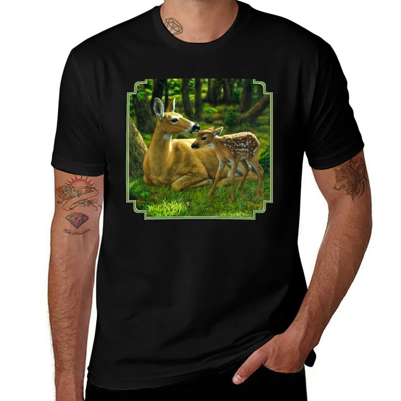 První jaro - whitetail jelen malba tričko t košile pro muž bavlna měkké muž tričko bavlna t košile muž tričko