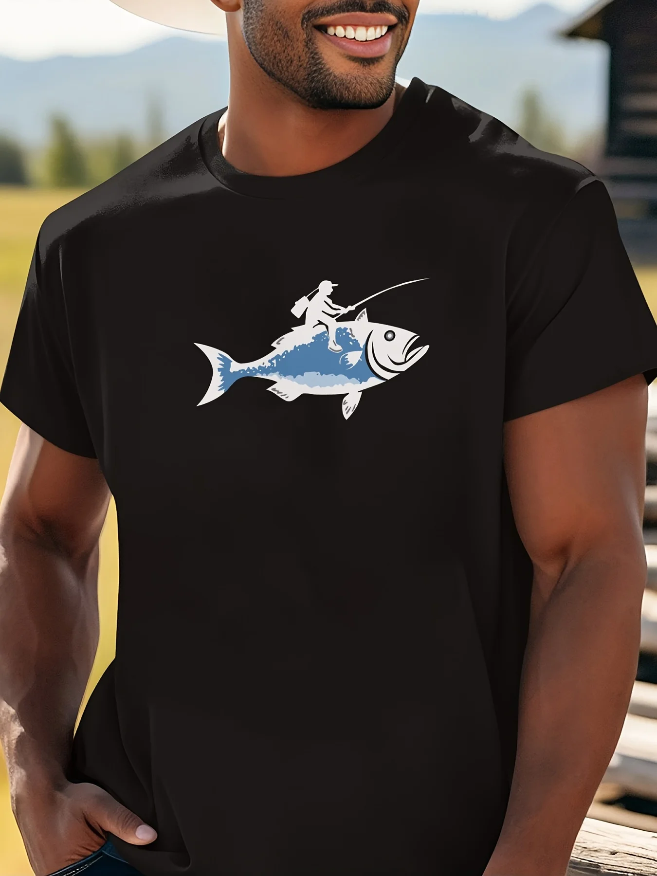 Rybář jízdní obr ryba grafické pánské bavlna tričko ležérní výstřih do O krátký rukáv tričko