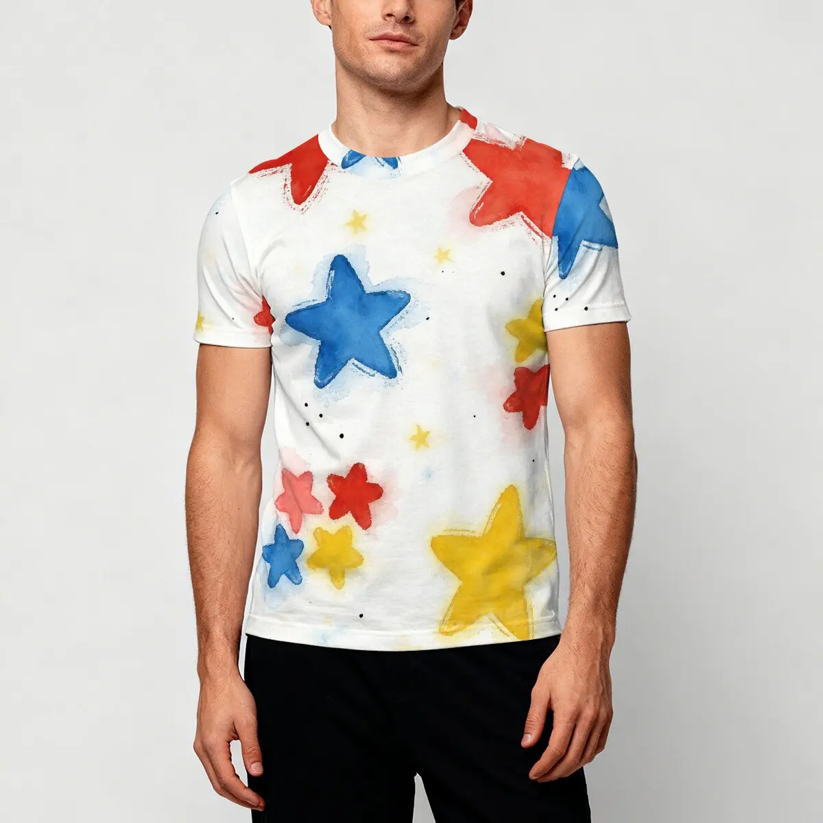 Jednoduchý a cartoonish hvězda tisk s krátkými rukávy round-neck tričko pro muži, moderní a versatile ležérní nejvyšší pro léto