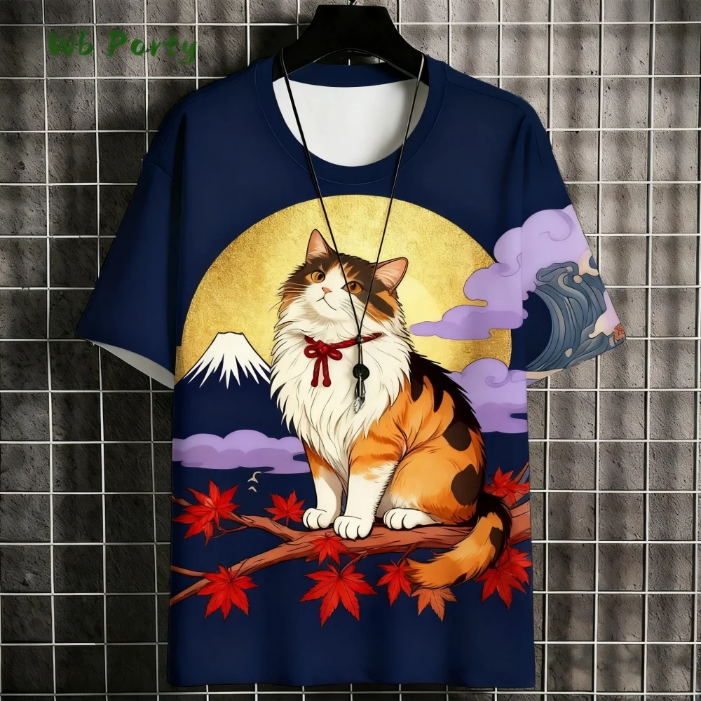 Pánské tričko japonský styl samuraj kocour grafické 3D potištěné tričko ležérní krátký rukáv tričko outdoorové nadrozměrné muži oblečení topy