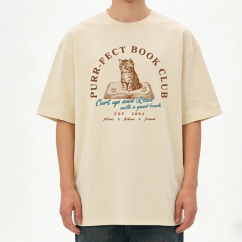 Purrfect kniha klub legrační knižní T košile vintage volné knihomol tričko roztomilá kocour grafické košile muži literatura unisex topy dárky