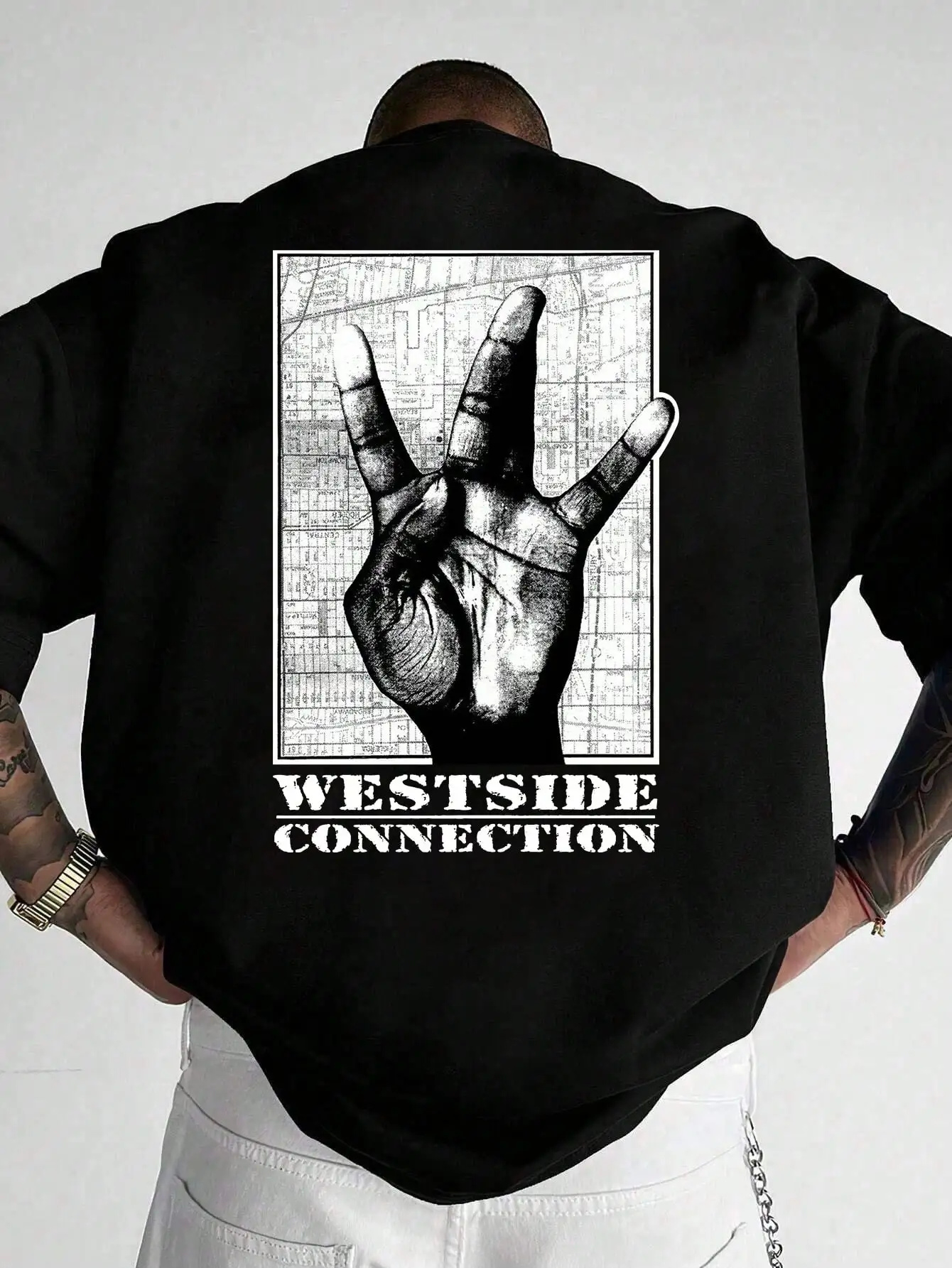 Mn's minimalistické gesto textové zpět tisk, pánské krátký rukáv tričko