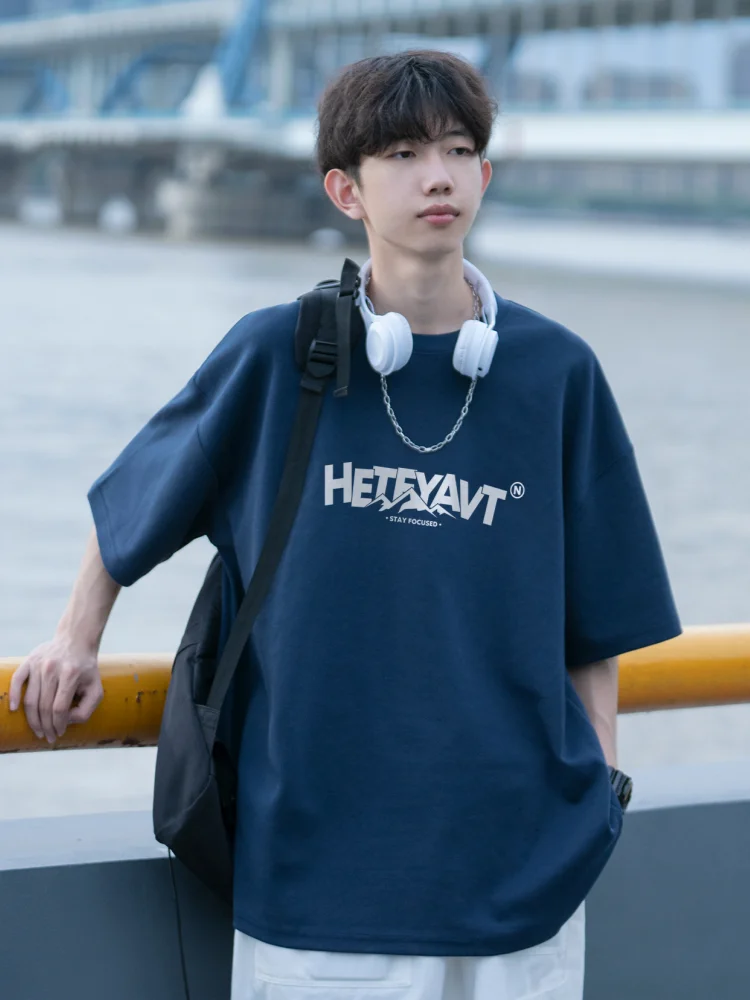 Japonský sle y pánské ort sve t-irt čistý bavlna léto nový heavyweight volné kolo severovýchod dopis tisk tričko