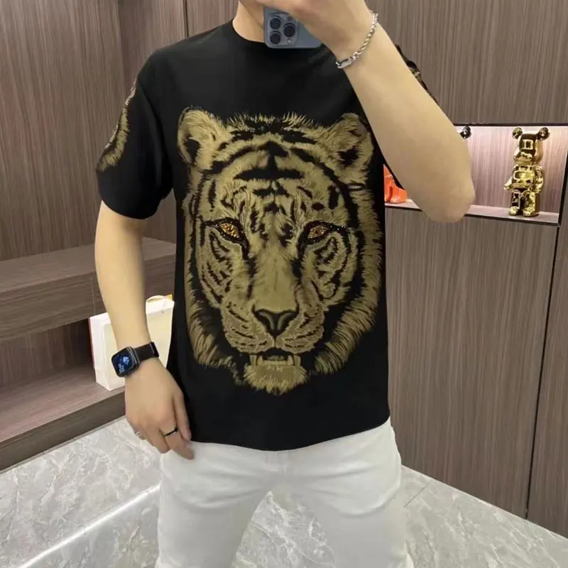 Bavlna těžký celní poplatek volné krátký rukáv trička pánské ležérní módní jednoduchý potištěné košilky pánský 2025 nový léto oblečení topy
