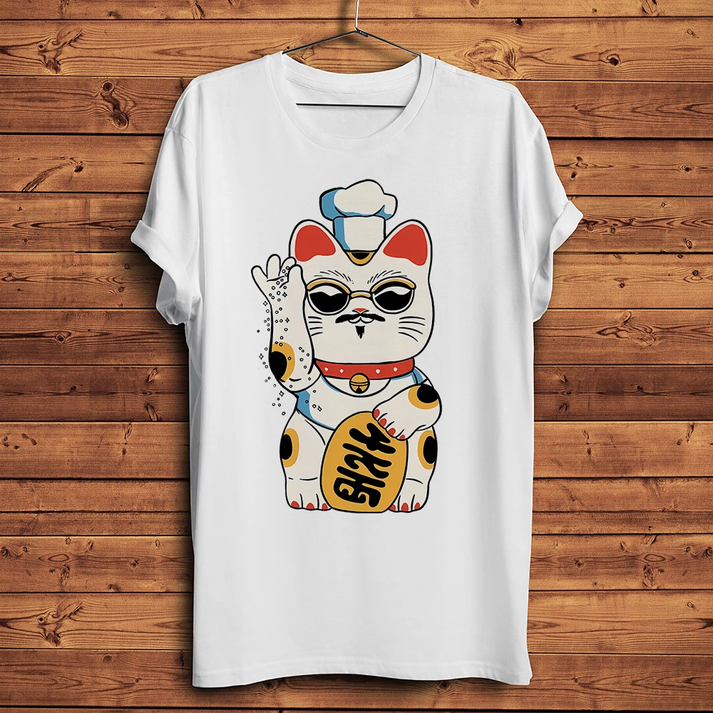 Šťastný kuchař kuchařka maneki neko kocour legrační mňau tričko homme výstřih do O krátký T košile pouliční oblečení unisex tričko prodyšné tisk