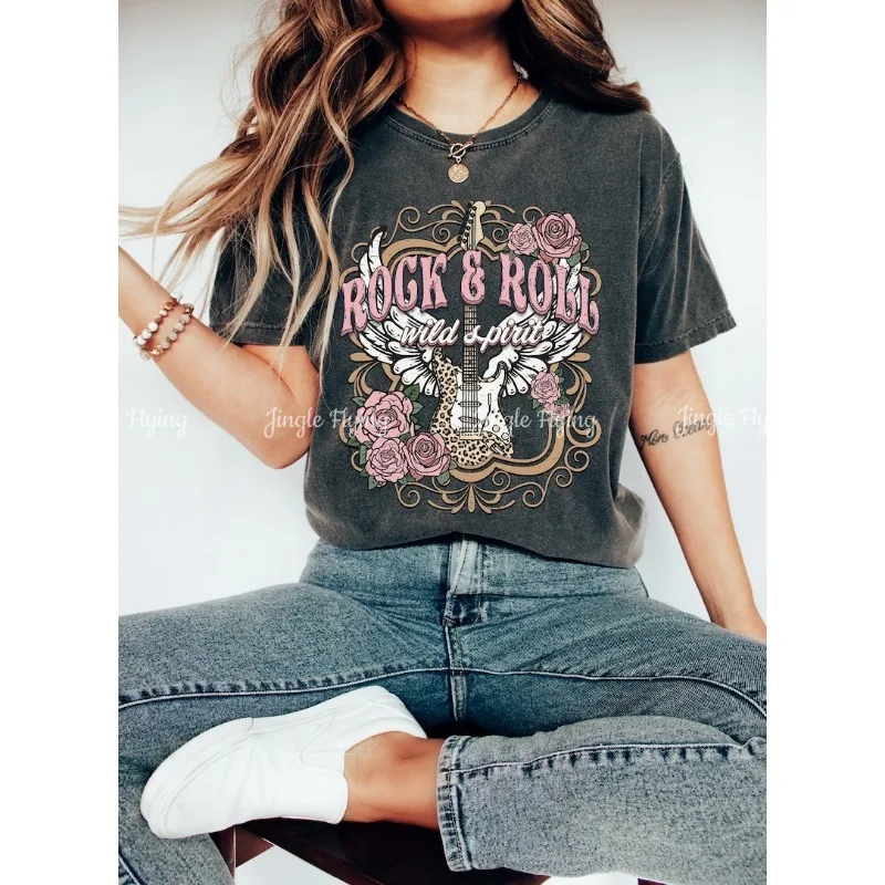 Nestandartní N teevintage styl a kytara košile rolovat hudba milenec tričko songwriter tričko leten hornina