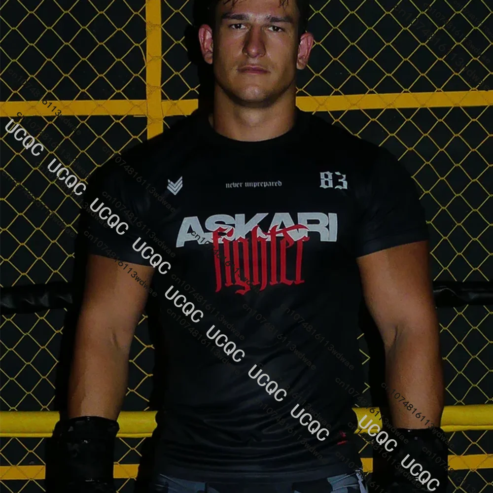 Nový askari pánské box a zápas trička léto sportovní fitness rychlý suchý fitka s krátkými rukávy trička outdoorové tvoření oblek