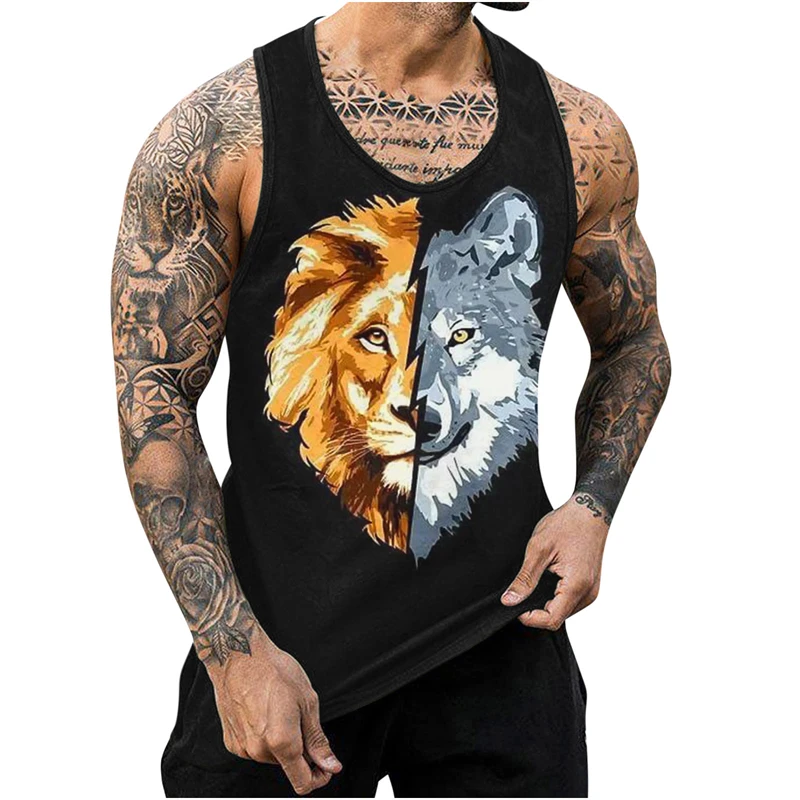 Nový lev 3D tisk pánské komora topy harajuku živočich vlčí střih léto topy fitness kulturistiky fitka sval bez rukávů košile