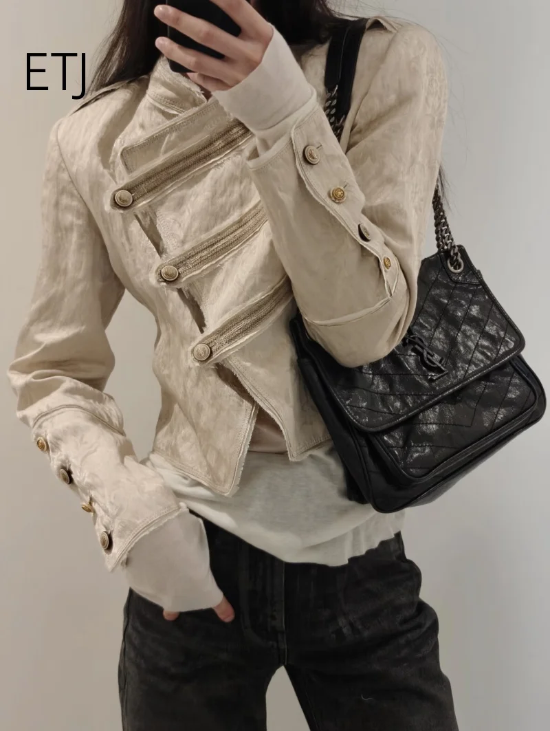 ETJ 2026 ženy vintage napoleon bunda dvojitý breasted vojenská kabát žakárové oříznuté sako elegantní večírek nést