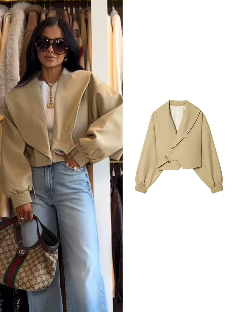 TFMLN elegantní klopa bombardér bunda pro ženy jaro podzim dlouhé rukáv celistvý kabáty paní vysoký ulice ležérní sloh svrchní