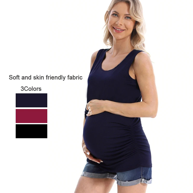 Celistvý barva těhotenské camisole tílko léto bez rukávů měkké prodyšné ležérní volné pohodlné pro těhotná ženy