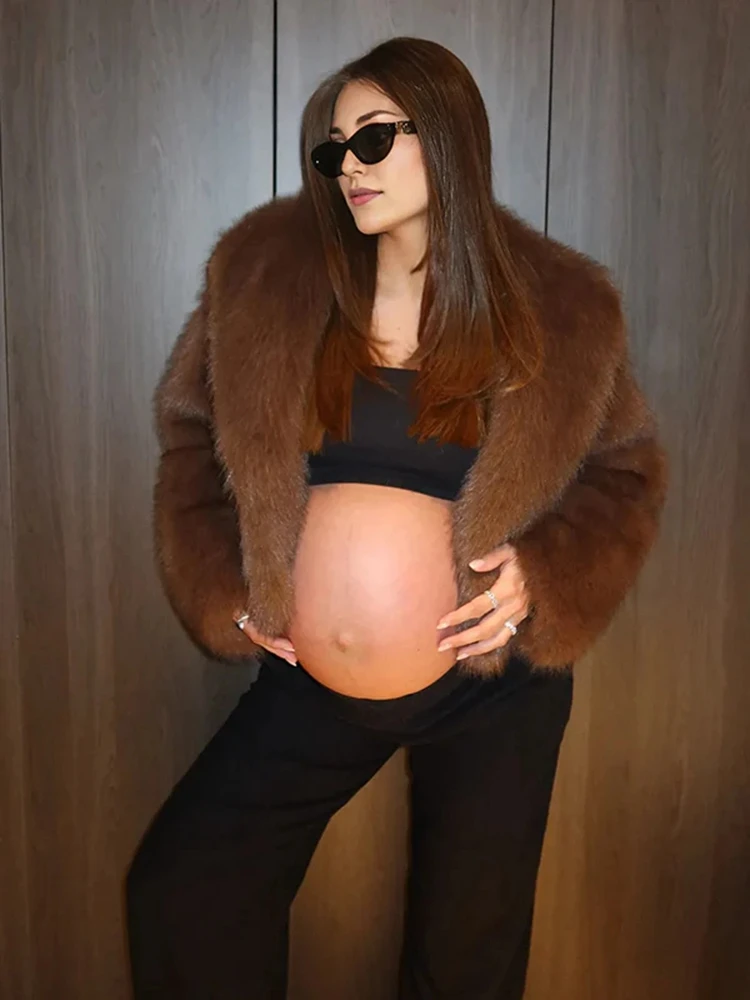 Těhotenské falešný kožich osvěta kabát hnědá krátký bunda těhotenství fotka obleček teplý plyš nejvyšší pro těhotenské fotka rekvizita stylové stylishly