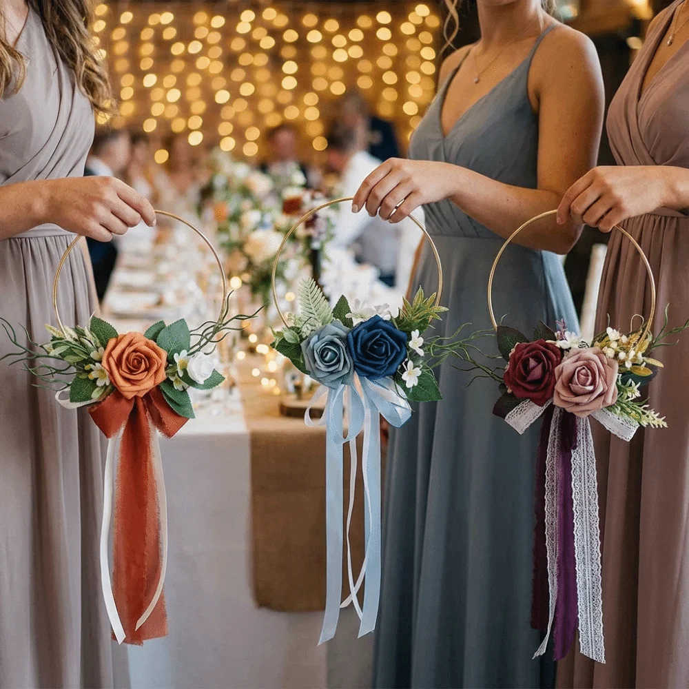 Romantické svatební zlato obruč kytice kapesní simulace družička květinová obruč věnec DIY elegantní umělý růže girlanda