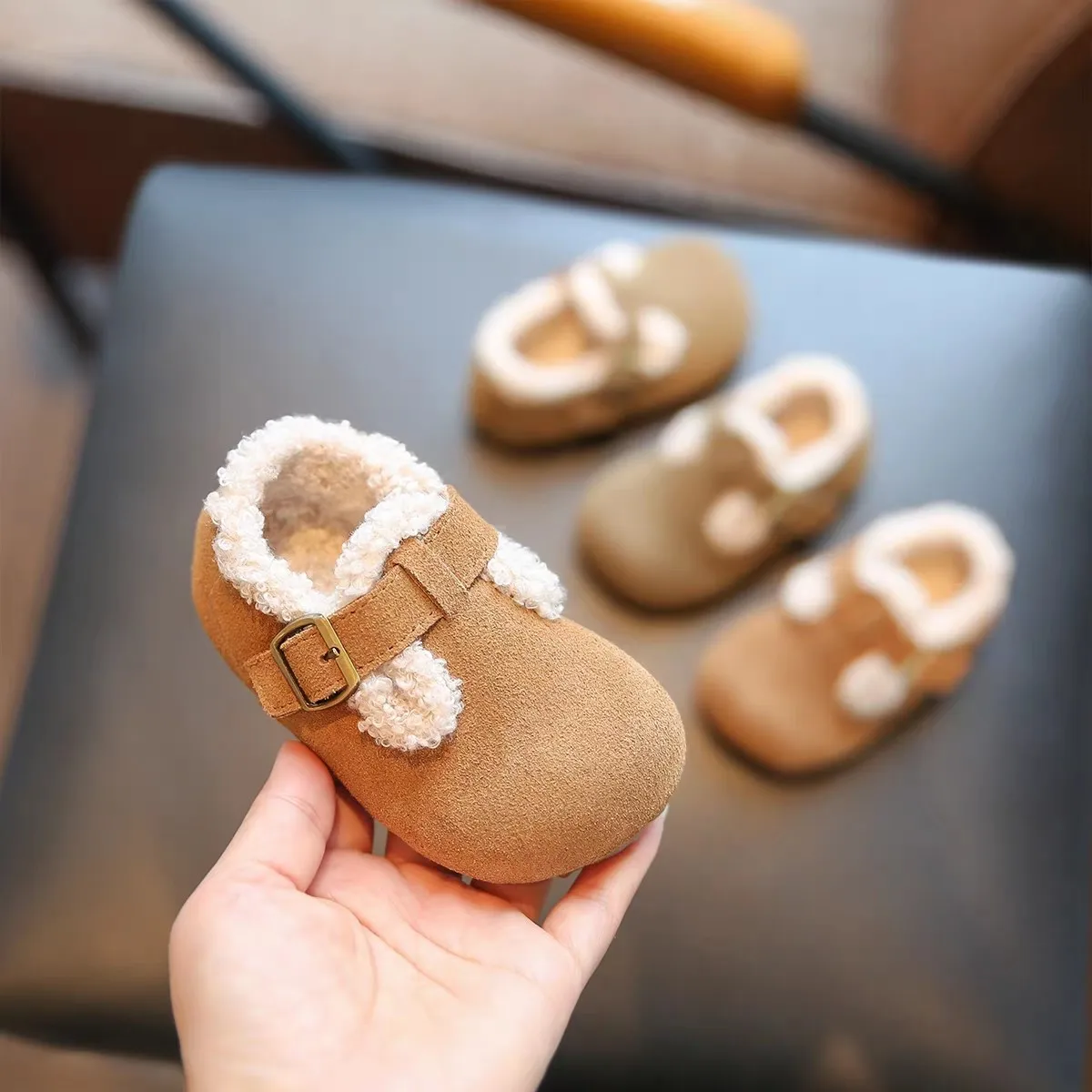 Originální kůže vodotěsný batole děvče teplý kožich zima kotník boty