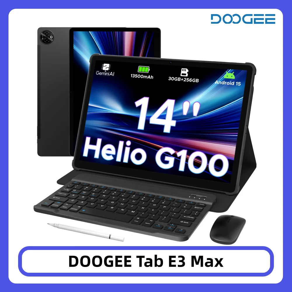 DOOGEE tab E3 maxi tablet PC 32gb 256GB 14'' 2.1K obrazovka 13500mah velký baterie helio G100 16mp Android 15 blíženci AI chytrý blok