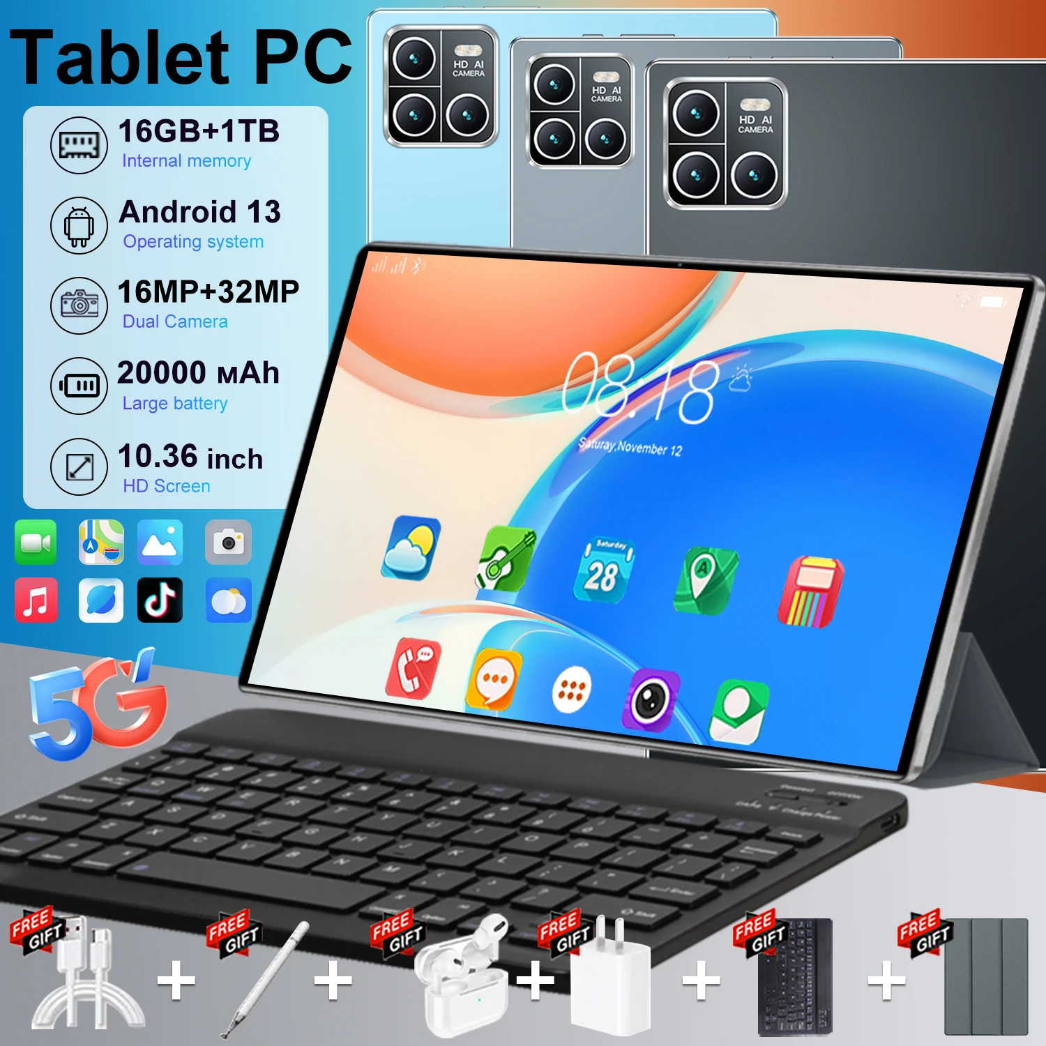 Android tablet velký hd obrazovka 10.36-inch 16gb beran 1TB ROM 20000mah Android 13.0 14 jádra tablety PC type-c dvojí kamera 16MP+32MP dvojí sim karta sit' WIFI Bluetooth GPS WPS úřad dárky