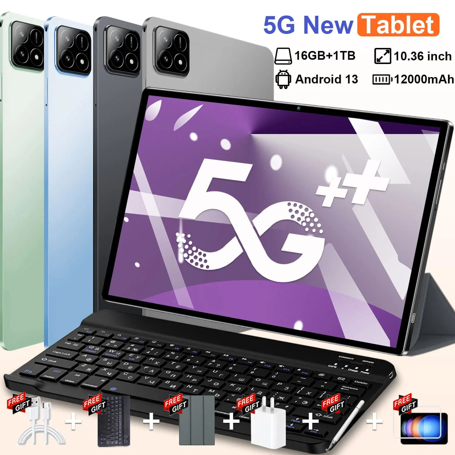 2025 nový 5G tablet PC 10.36 palec tablet Android 16GB+1TB ROM 16MP+32MP sit' 12000mah Android 13.0 WIFI Bluetooth dvojí sim