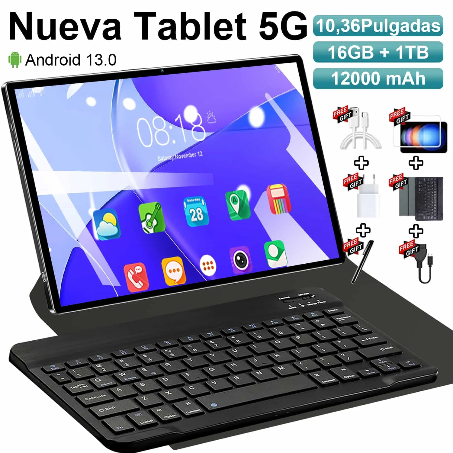2025 nový 5G tablet PC 10.36 palec tablet Android 16GB+1TB ROM 16MP+32MP sit' 12000mah Android 13.0 WIFI Bluetooth dvojí sim