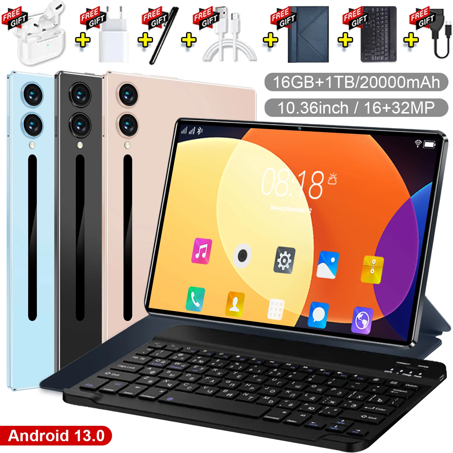 Android tablet velký hd obrazovka 10.36-inch 16gb beran 1TB ROM 20000mah Android 13.0 14 jádra tablety PC type-c dvojí kamera 16MP+32MP dvojí sim karta sit' WIFI Bluetooth GPS WPS úřad dárky