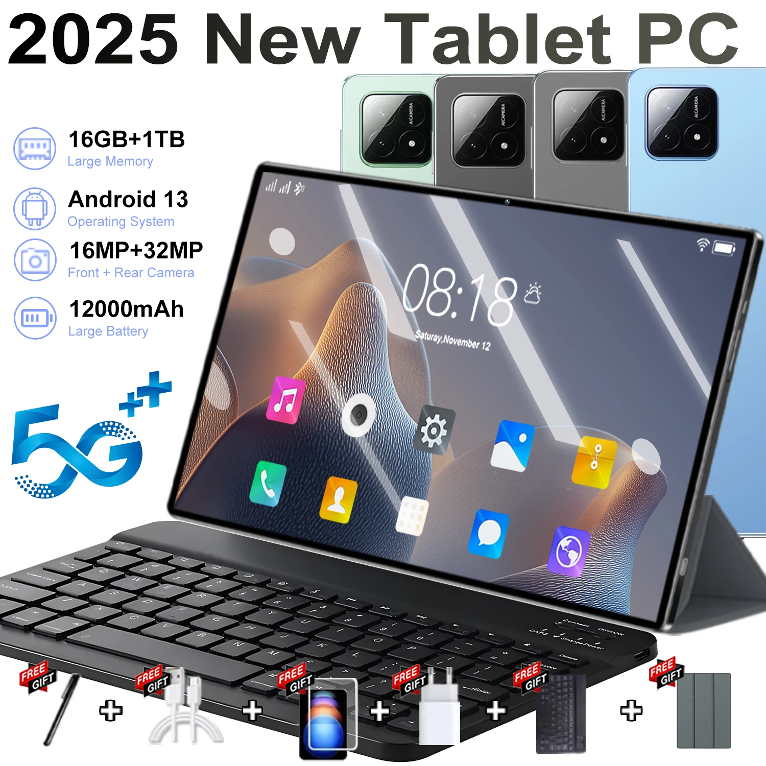 2025 nový 5G tablet PC 10.36 palec tablet Android 16GB+1TB ROM 16MP+32MP sit' 12000mah Android 13.0 WIFI Bluetooth dvojí sim