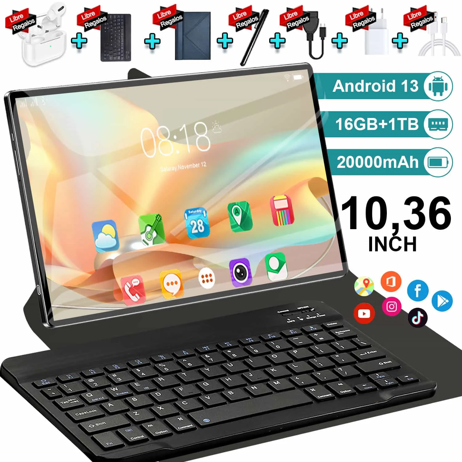 Android tablet velký hd obrazovka 10.36-inch 16gb beran 1TB ROM 20000mah Android 13.0 14 jádra tablety PC type-c dvojí kamera 16MP+32MP dvojí sim karta sit' WIFI Bluetooth GPS WPS úřad dárky