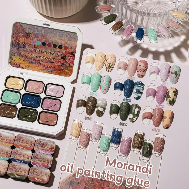 9colors/box romantické jaro léto dopamin mazat malba hřebík lepidlo ne mýt textura květin maloval vyřezávaný hřebík DIY 2.5g