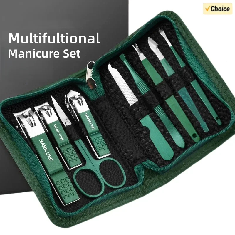 Zelená nerez ocel hřebík zastřihovač sety 6-18 ks manikúra sada s kůže pouzdro odborný noha a obličej péče nářadí soupravy
