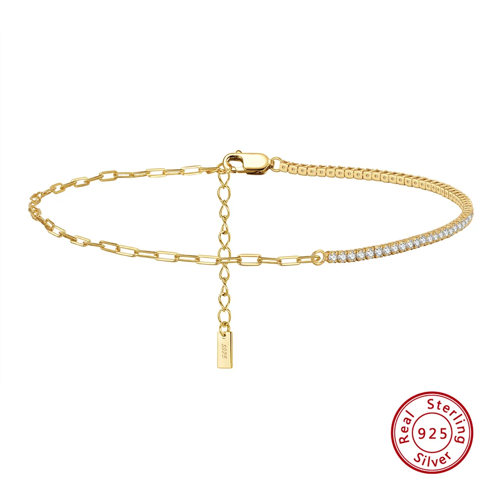 Líbat MANDY 2025 paperclip běžící pás & tenis broušené sklo nákotník zirkon noha běžící pás móda 925 mincovní stříbro CZ bos běžící pás SA21