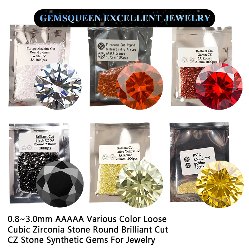 1.0mm~3.0mm 5A pestrý průhledný faceted kubický oxid zirkoničitý CZ volné kameny 12colors 1000ks kolo krájet kubický zirkon kameny pro DIY