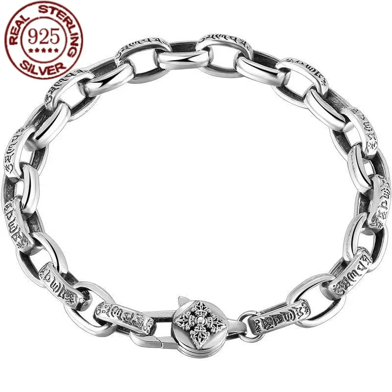 S925 stříbro six-word jistota náramek pánské a dámská móda trend jednoduchý osobnost šperků retro etnický styl náramek