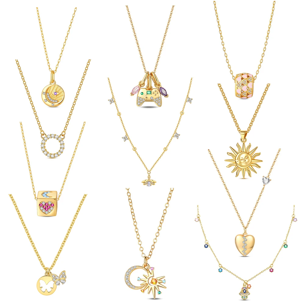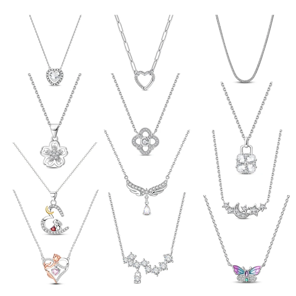 Nový 925 mincovní stříbro zlato pokovené řetízek s slunce luna srdce motýl okouzluje zirkon vykládané móda šperků pro ženy