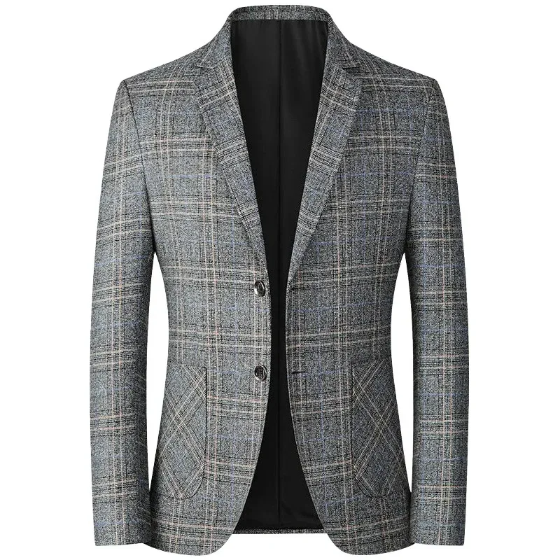 Ital styl pánské sako sude ležérní muž oblek bunda vroubkované klopa jeden kusu šach svatební kabát pro ples večírek