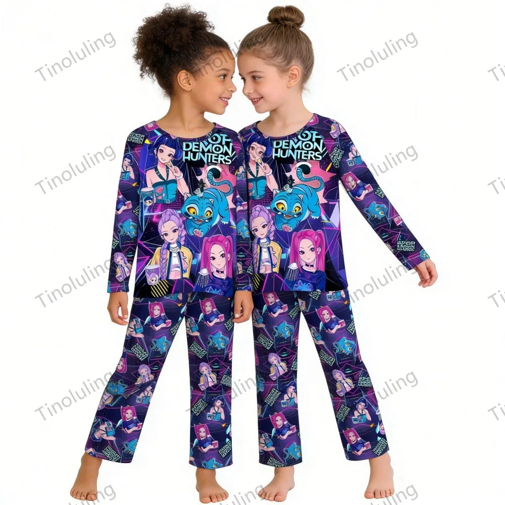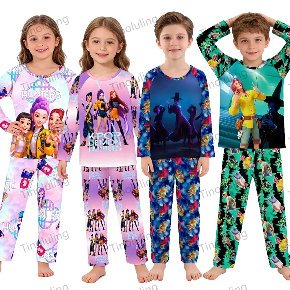 Chlapci dívčí pyžamo sety děti 3čepel 4 5barvy 6pro 7 8 9 10 11pro 12 let kpop běs hunters dlouhé rukáv pijama batole oblečení na spaní dítě oblečení
