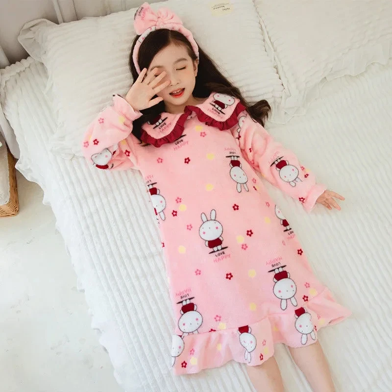 Dívčí pyžamo flanel podzim a zima noční košile dětské medium-length noční košile župan dívčí děťátko korál rouno loungewear