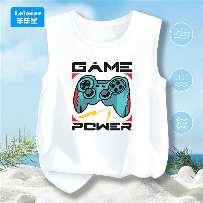 Boys' bavlna tílko kreslený gamepad tisk léto móda pouliční oblečení komora nejvyšší 2025 bez rukávů tričko nejvyšší YXJ01