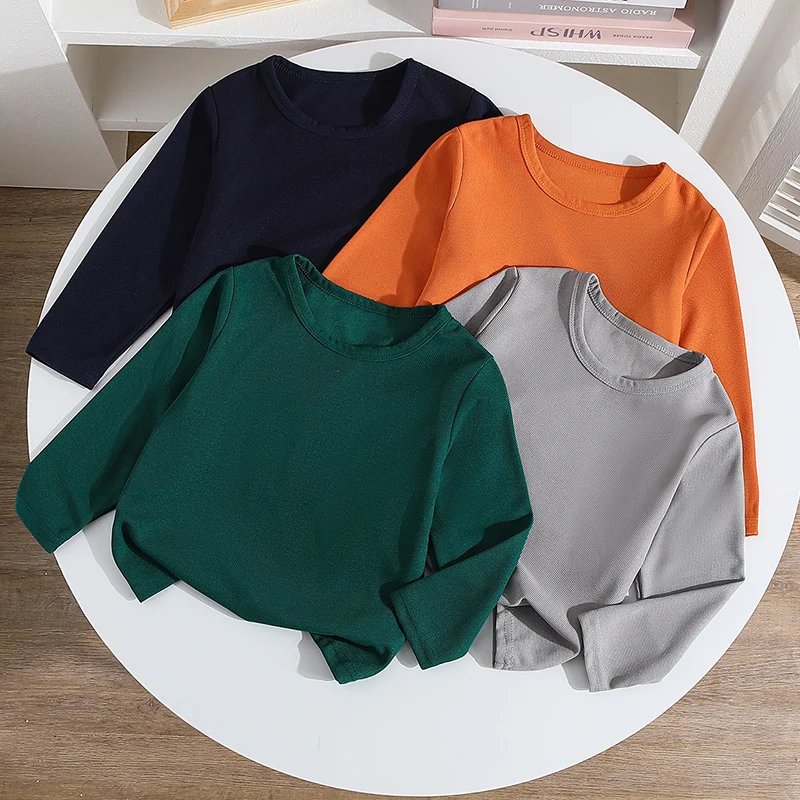 4/1 kusu podzim a zima dětské celistvý barva základní versatile oplatek dlouhé rukáv tričko chlapci a dívčí kolo krk nejvyšší
