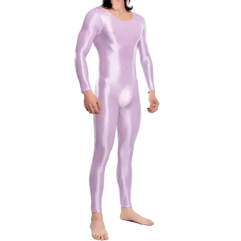 Sexi muži natahovací průhledná hladký rompers dlouhé rukáv bodysuits one-pieces košilky jumpsuits mazat lesklý plný tělo trikoty