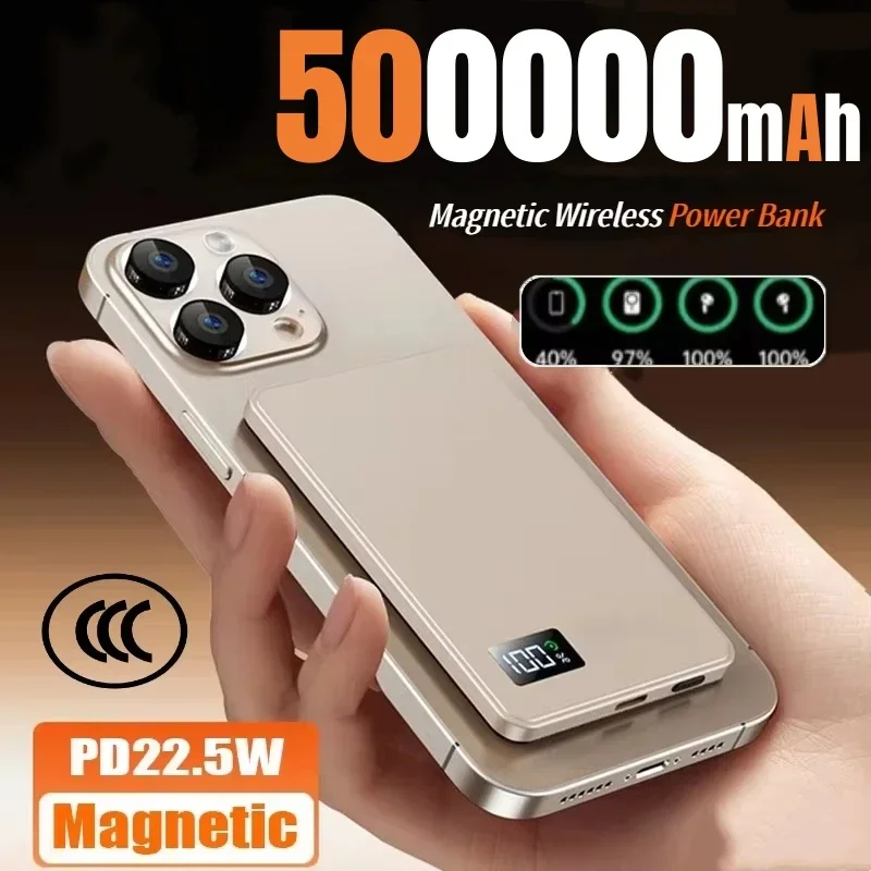 500000mah bezdrátový magnetický energie banka rychle nabíjení přenosné PD22.5W externí baterie pro MagSafe pro iphone17 Samsung Xiaomi