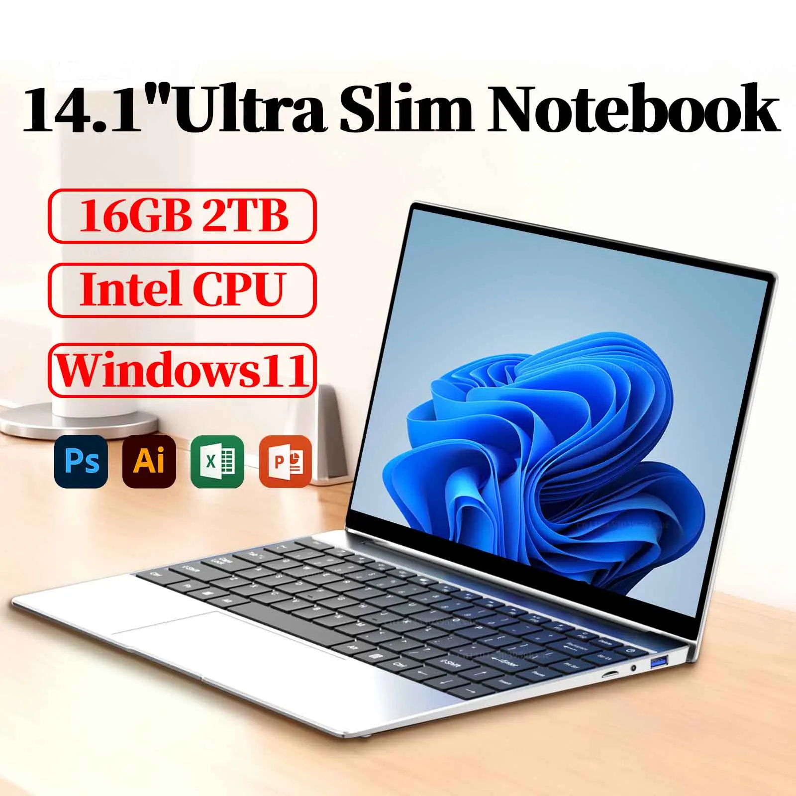 Nový 14.1" uitra štíhlý notebook windows11 16gb beran 2TB SSD intel N3700 notebook hráč 1920*1080 displej úřad studovat počítač PC