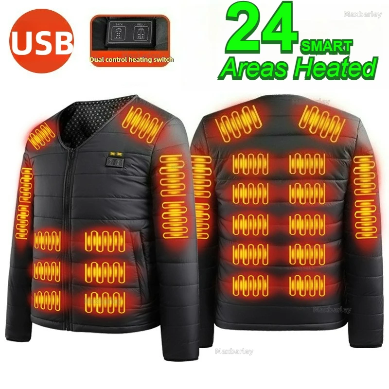 24 pásmo vyhřívaná bundy muži USB chytrý sebe ohřev tílko ženy dobíjecí vyhřívaná kabát tepelný lyže vyhřívaná oblečení lehoučké